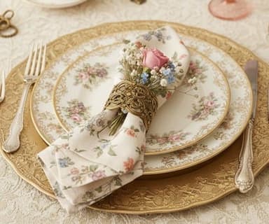 Also called a bread & butter plate, the 6″ side plate is designed for bread, small bites, or sweet treats. Used as the top layer in a stacked place setting, it sits above the tea plate, dinner plate, and charger with a teacup and saucer completing the look, perfect for vintage-inspired tableware rentals and refined event styling.