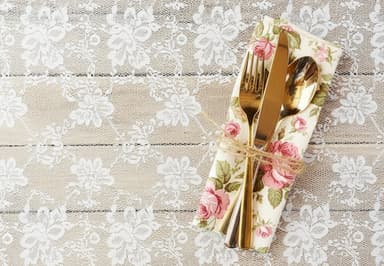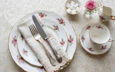 Our elegant utensil sets are available in stainless steel, silver, or gold, perfect for classic tea party service. Each guest receives a butter knife for spreads, a pastry fork for delicate pastries, and a teaspoon for stirring tea or enjoying sweets. Designed to complement your table beautifully, these sets can also be color-coordinated to match your theme, adding both charm and functionality to every setting.